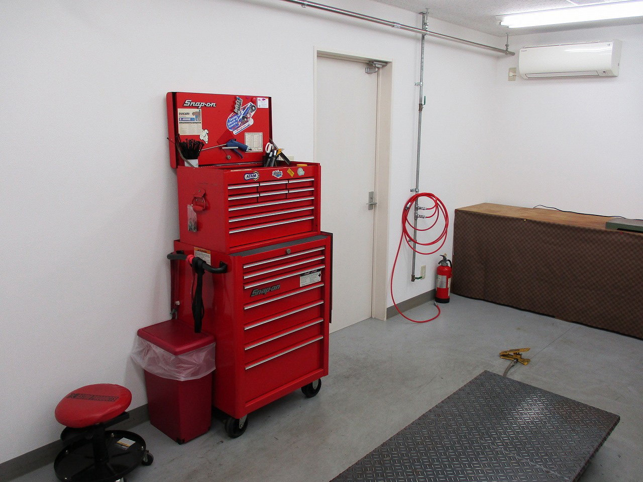 この他にも各スペース(個室・リフト有り・リフト無し)共有でお使いいただける工具、大型特殊工具、DUCATI用特殊工具などが無料でご利用いただけます。詳しくは下記をご覧ください。